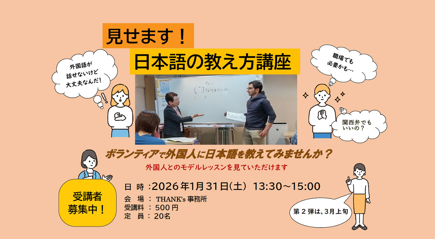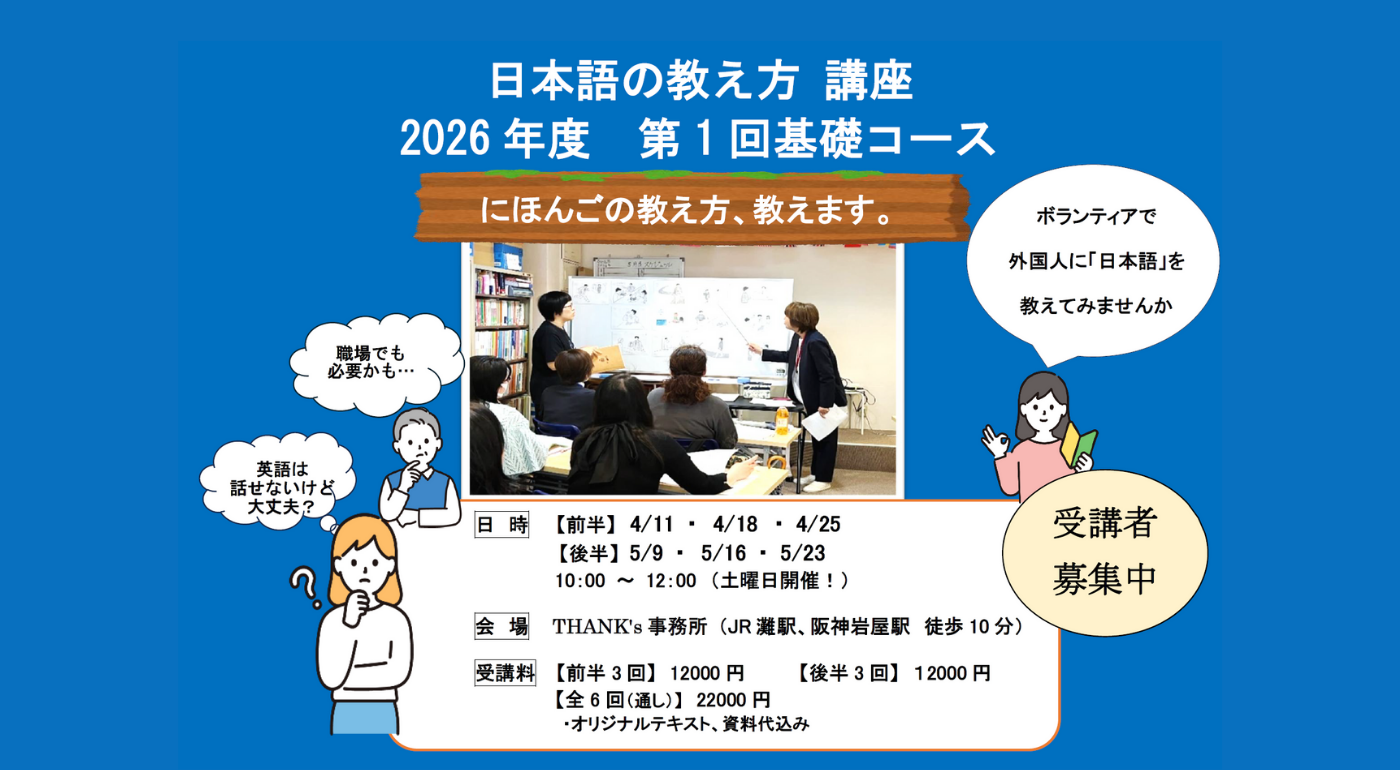 THANK’s独自の方法で、ボランティアの方でも効果的に教えられるようになりました。身近な外国人に日本語を教えてみたい方、THANK’sでその方法を学びませんか。 - 外国人の日本語教室(にほんご交流サロン)